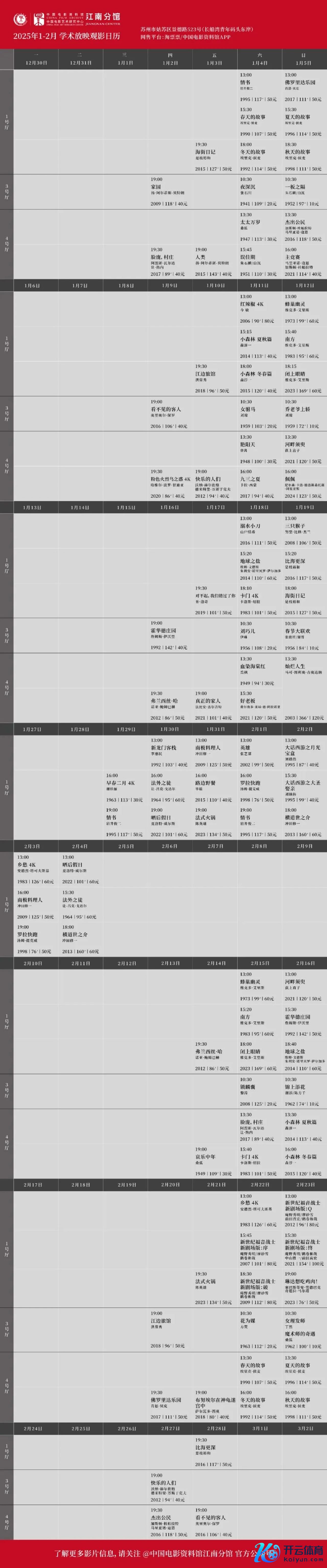 苏州本日放映|2025.1.12 周日