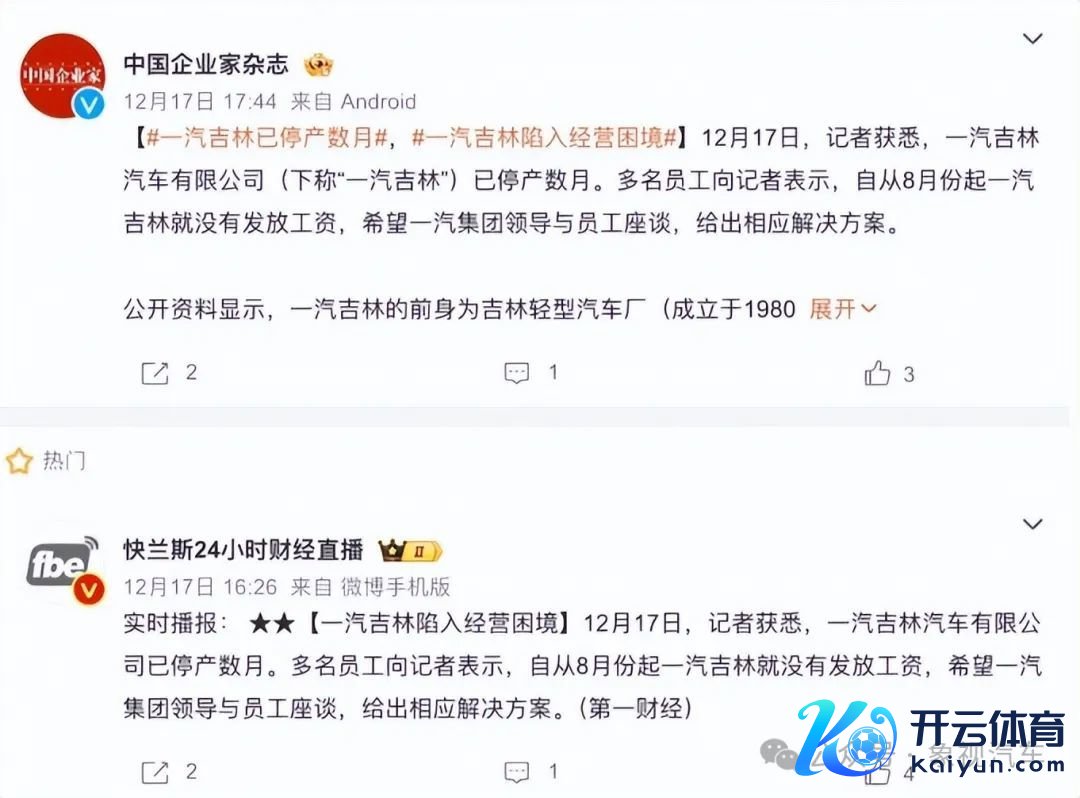 近日,多家媒体报说念一汽吉林汽车有限公司,早已深陷主义窘境。