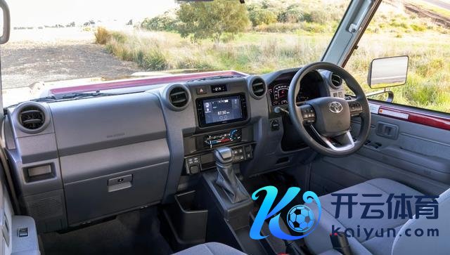 新款丰田LC79 Series在内饰方面,主打维执立场,内饰均接收硬塑料材质,空调接收手动改变的面孔,中控屏幕的尺寸为9英寸,换挡机构接收机械式,机械式手刹在这个时期亦然较为有数,标的盘接收塑料材质,中控台还保留了部分实体按键,合乎自己的定位。