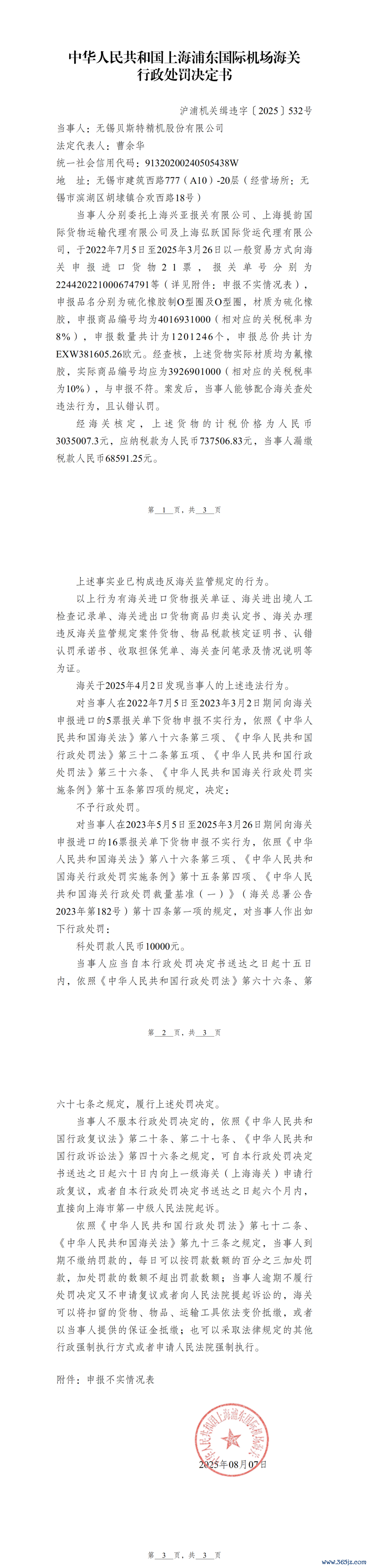 近日开云(中国)kaiyun网页版登录入口开云体育,中华东谈主民共和国上海浦东国外机场海关发布对于无锡贝斯特精机股份有限公司违背海关监管规定行政惩办决定书(沪浦机关缉违字〔2025〕532号)。